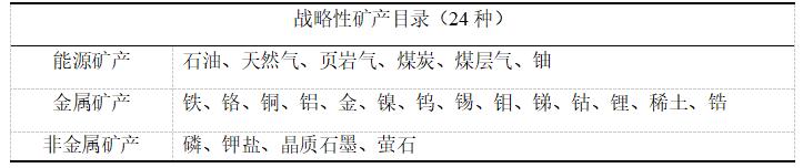 2016年11月,国务院批复通过《全国矿产资源规划(2016—2020年)》,将石油、天然气、煤炭、稀土、晶质石墨等24种矿产列入战略性矿产目录,作为宏观调控和监督管理的重点对象。中国现阶段所制定的战略性矿产目录主要依据国家经济安全、国防安全和战略性新兴产业发展需求角度制定,涵盖了能源矿产、金属矿产和非金属矿产。然而,在后工业发展阶段,特别是随着高新技术发展和低碳技术进步,以稀有、稀散和稀土元素为主体的关键矿产的重要地位与不可替代性更为显著。关键矿产相对于战略性矿产具有更高的经济重要性与供应风险,同时还增加了战略性新兴产业的内容,因此,中国制定关键矿产战略要解决“关键性”的界定和政策工具选择这两个重要问题。