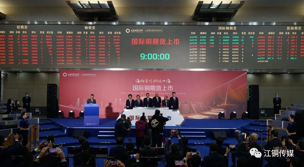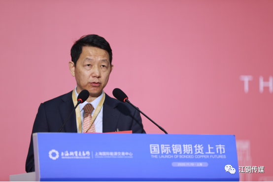 在国际铜期货上市仪式上,公司副总经理陈羽年代表江铜致以热烈祝贺,他表示:国际铜合约为国内外投资者参与国际铜定价开辟了新通道,为我国铜行业提供了更加丰富完善的市场风险管理工具,在服务国内国际“双循环”上必将发挥重要作用。江铜将进一步深化与上海期货交易所、上海国际能源交易中心的合作,共同为我国铜产业高质量发展贡献力量。
