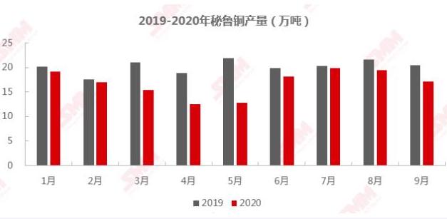 图2:2019-2020年秘鲁铜产量