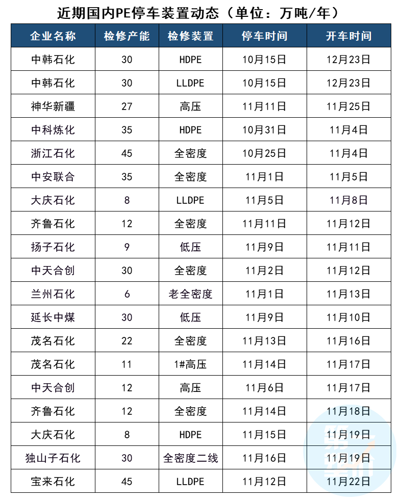 两油库存65万吨,较上周五增10万吨。目前石化和港口库存压力不大,供应端多存挺价意愿,另一方面市场关注度较高的茂名石化2#LDPE装置计划12月6月开始大修65天,继续推涨高压价格。
