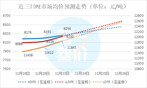 昨日国内聚乙烯市场报盘上涨,周初刚需加之期货走高,石化出厂价上调,贸易商报盘纷纷跟涨,成交良好。昨日主力期货夜盘高开上扬,提振市场心态,预计今日国内聚乙烯现货市场报盘延续涨势。