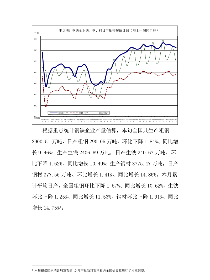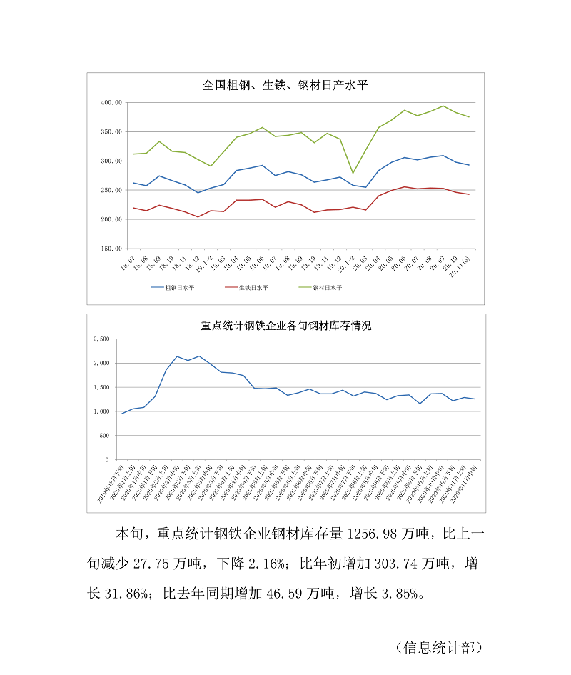 中钢协数据显示,2020年11月中旬,重点统计钢铁企业共生产粗钢2113.40万吨、生铁1868.69万吨、钢材2064.71万吨、焦炭(2419, 6.00, 0.25%)322.82万吨。