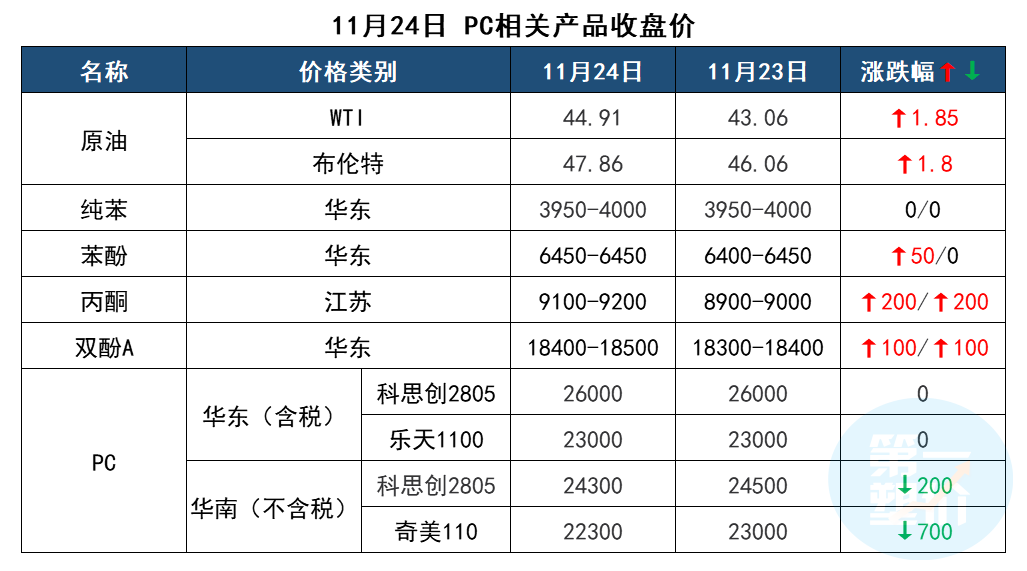 今日市场价格涨跌互现,PE、PP普涨50-800元/吨,PE高压最高涨900-1850元/吨,茂名石化2426K单日涨1850元/吨,PP最高涨1300元/吨,PA6部分跌100-850吨,ABS/PS走弱,跌50-300元/吨,个别涨100-400元/吨,PC跌200-1400元/吨,个别涨1000元/吨。