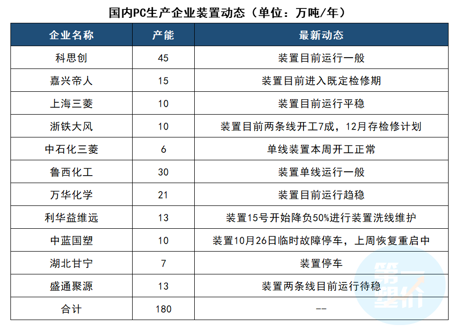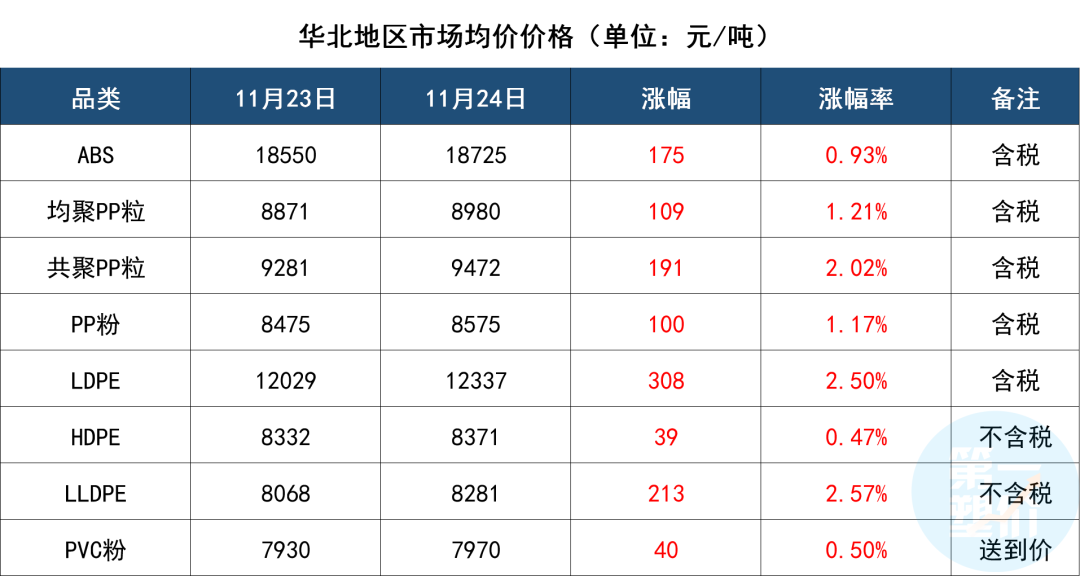 1、北方天气转冷,部分地区环保严查,农膜、管材等下游行业开工受限。