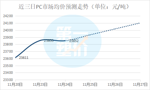 PC行业开工目前降至近期低位,短期存适度恢复预期,但行业开工高位暂预期有限。目前货源依旧紧张,厂家价格继续上调,昨日鲁西化工出厂上调500元/吨,但而伴随市场高价交投阻力加大,部分业者信心不足。