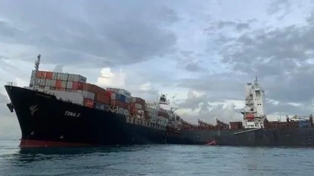 报告显示,悬挂塞浦路斯国旗的66,332吨集装箱船“Tina I”号建造于2004年、目前由马士基航运公司租赁,该轮于11月22日从新加坡驶往印度尼西亚雅加达,途中与已在此搁浅的伊朗“Shahraz”号货船相撞。据报道,“Tina I”号也在巴图岛附近搁浅,目前该轮已经出现了严重左倾。
