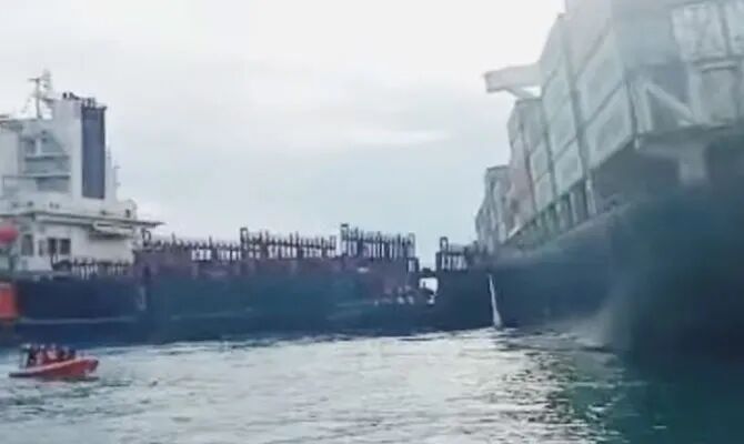 一集装箱船与搁浅货船相撞,曾挂靠国内多个港口,船期恐延误