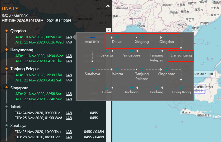 但印度尼西亚运输部报告表示,这起相撞事件发生在午夜之前。接到相撞事故信息后,立即派出两艘巡逻艇“对现场进行监视和安全保障”。 发生碰撞的原因尚未清楚,事故原因正在进一步调查中,目前没有燃油泄漏。根据大船期数据显示,该轮的经营人为马士基,事发前曾挂靠国内的大连、天津新港、青岛、连云港等港口;除了马士基,共舱的船公司还有HAMBURG SÜD、MCC、SAFMARINE、SEAGO和SEALAND。近期有配载在该船的货主要注意了,船期恐有延误。