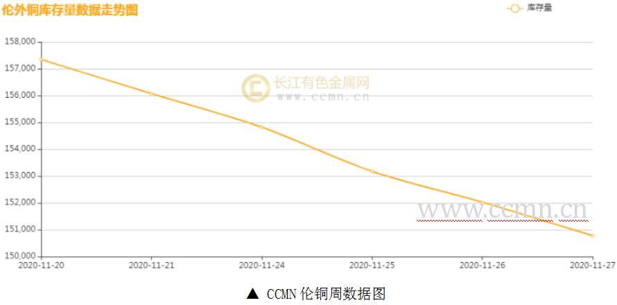 如图所示,本周伦铜库存降势不改,累积减少6575公吨至150775公吨,累积降幅4.18%。