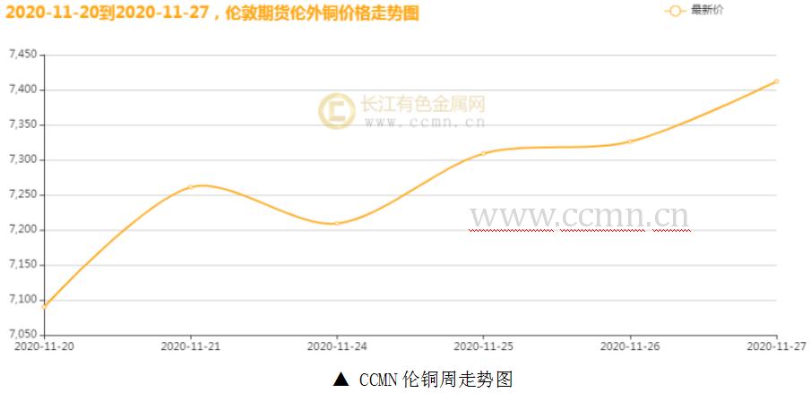 CCMN数据显示,本周伦铜继续走高。前四个交易日LME期铜均价报7314美元/吨,日均上涨37.75美元/吨;上周均价报7118美元/吨,环比上涨2.75%。