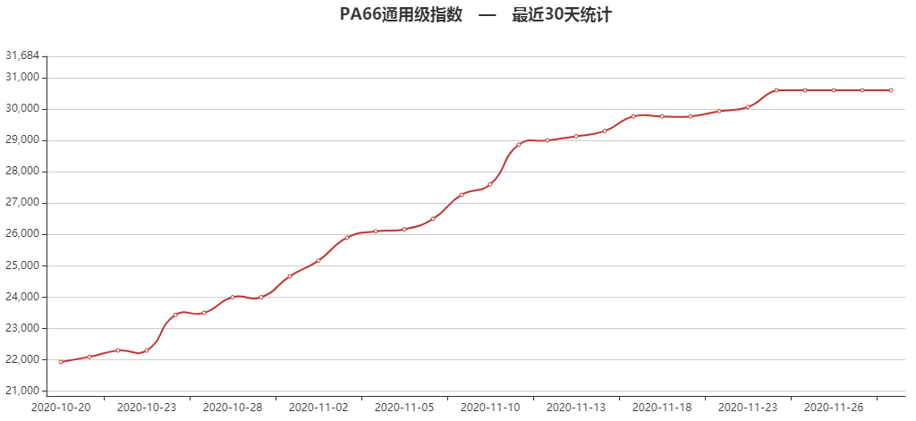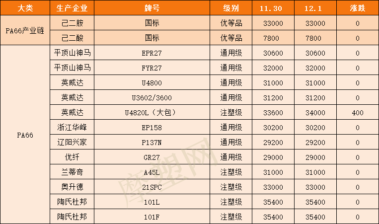 东丽宣布自12月1日起,PA66价格上调3000元/吨(含增值税)。