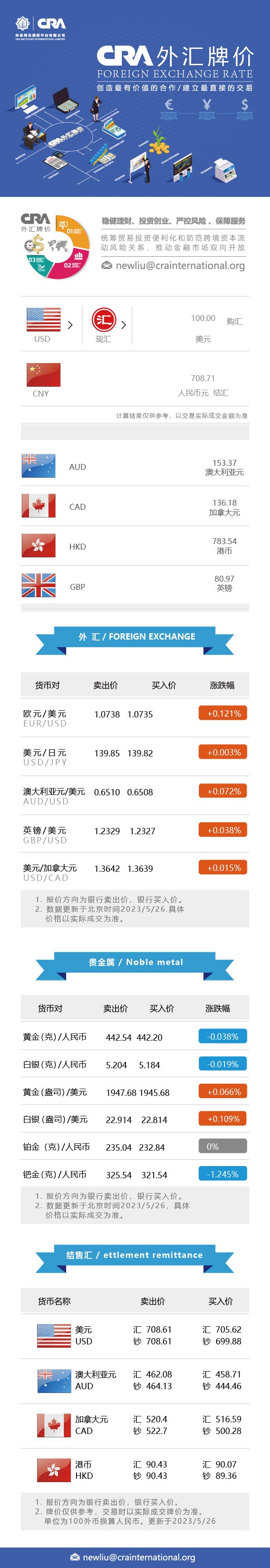 5月26日CRA贵金属及外汇市场价