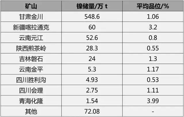 中国镍的储量较少,仅占全球储量的3%,主要分布在甘肃省,国内镍矿多以硫化镍为主,多用于生产纯镍。由于国内资源有限,我国镍矿资源进口基本来自菲律宾和印尼。