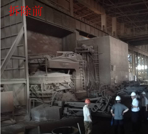 2、江阴兴澄特种钢铁有限公司于2017年10月11日到10月20日期间完成1台40吨电炉拆除工作,拆除前后照片附后。