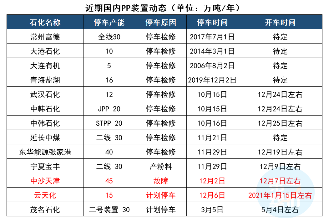 关于后市,12月份万华化学、海国龙油等新产能逐渐投放,供应压力略有上涨。工厂新订单量跟进不足,影响对原料市场采购积极性。但“双旦”假期以及“双12”节日临近,部分节日性需求将有提升。预计12月份聚丙烯库存仍将呈现去化状态,或将创出近三年新低。