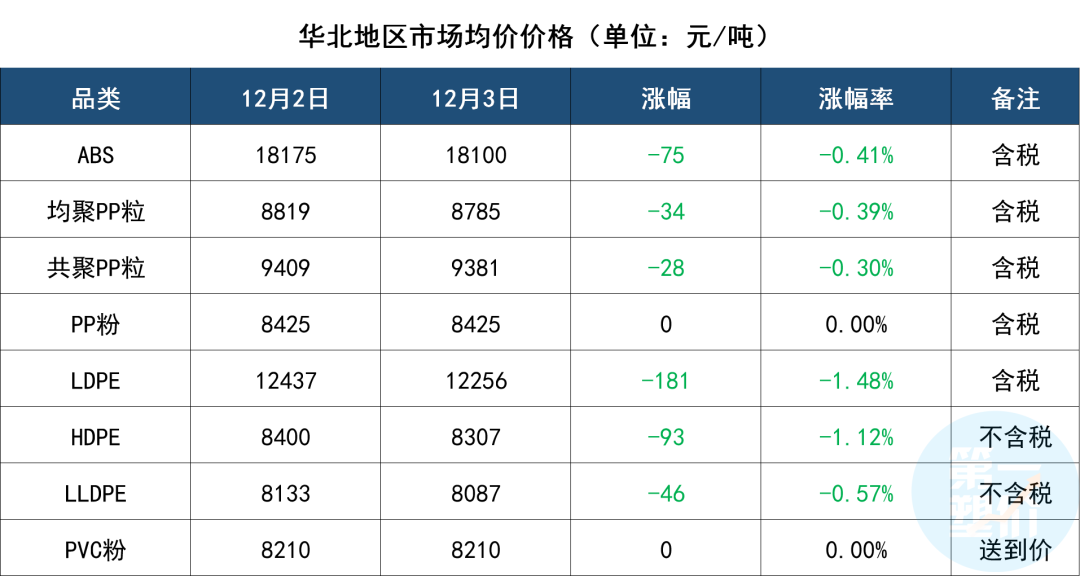 1、北方天气转冷,部分地区环保严查,农膜、管材等下游行业开工受限。