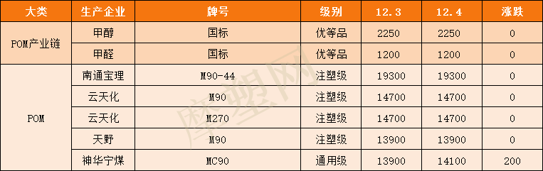 摩塑网交易平台成交情况,POM市场价格主要表现为大稳小动。市场交投氛围尚可,商家报价平稳,个别上调;平台上产品价格随市场变化;根据摩塑网平台成交数据显示,预计POM今日市场价格应会是稳定整理!