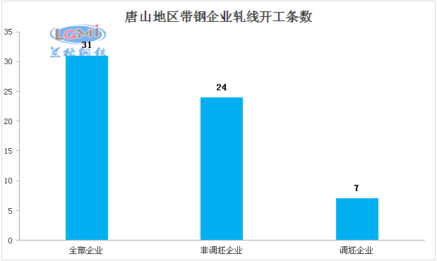其中非调坯带钢轧机有34个,在开工轧线24条,开工率为71%。调坯带钢轧机12个,在开工轧线7条,开工率为75%。