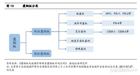 按照机械强度分,分为刚性和挠性两大类,而刚性覆铜板又包括纸基板、玻纤布基板、复合基板、积层多层板基材和特殊基板。