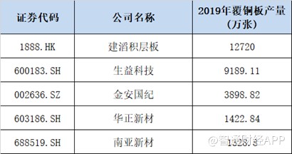 按2019年的产量来看,几大上市公司的排名为建滔积层板>生益科技>金安国纪>华正新材>南亚新材。