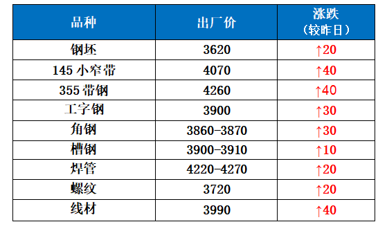 12月8日唐山钢坯直发价格报3640元/吨,较昨日涨20元/吨,仓储现货含税报3710元/吨,现货市场交投谨慎。唐山小窄带出厂价涨30,盘中拉涨10元/吨,基本出清日产。唐山型材价格继续上涨,涨后高位成交显弱,唐山地区建材市场价格集体上涨,期螺走势依旧偏强,市场成交整体可。
