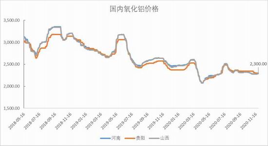 11月氧化铝价格延续窄幅调整走势。截止11月26日,河南、贵阳、山西三地氧化铝价格分别为2285、2300、2285元/吨,均价较10月下降约24元/吨。在供需矛盾持续弱化以及无明显外力干扰的情况下,11月氧化铝价格走势依旧胶着。虽然11月京津冀地区曾出现一次极端的天气情况,在晋豫地区拉响红色预期之后,市场一度对环保限产抱有较高期待,但在运行产能下调较为有限的情况下,因实际产量收缩有限,使得氧化铝价格并未出现明显波动。同时在建成闲置产能依旧过剩,部分企业扩大产能运行规模降低单位成本的影响下,供应维持过剩的担忧情绪也在左右着氧化铝价格的市场表现。并且在海德鲁巴西氧化铝工厂产能恢复之后,海外过剩供应的冲击预期也增强了氧化铝价格的看空预期。不过在新一年长单签订即将来临的情况下,买卖双方的实际交投情况较为僵持,价格下行幅度也相对有限。但受近期碱液价格不断回升影响,氧化铝生产成本的缓慢上移已经开始侵蚀企业的生产利润。在氧化铝生产效益加速压缩的不利情况下,供应端的扩产动力或将转弱,部分高成本产能或有借助采暖季限产提前进入检修的可能。不过在有明确规模性减停产出现之前,供应端的过剩压力依然较大,氧化铝价格的跌势也难以真正企稳。
