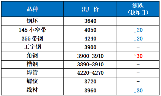 带钢:12月9日唐山首唐宝生等主流钢厂小窄带出厂价稳,盘中降20元/吨,成交尚可,截至发稿报4050元/吨。355系降20元/吨,唐山瑞丰报4240元/吨。