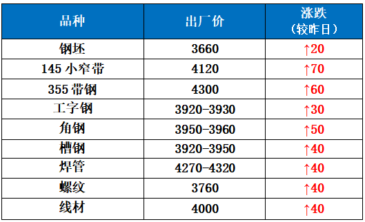 12月10日唐山钢坯直发价格报3660元/吨,涨20元/吨,仓储现货含税报3770元/吨,短期市场看涨情绪升温。唐山小窄带出厂价涨20,盘中降50元/吨,成交尚可。唐山型材价格全面上涨,整体表现一般,唐山地区建材市场价格整体上涨30-40元,期螺走势强势,市场看涨心态积极。