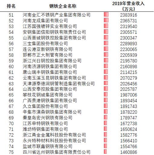 除了中国宝武、河钢集团、鞍钢集团、首钢集团等巨头外,行业里还有一大批实力不俗的民营企业,产量占比超过六成。究竟谁才是“领头羊”,2020年百强民营钢铁企业排名可以给我们答案。根据各家民营钢铁企业去年也就是2019年度营业收入进行排名,前100名如下: