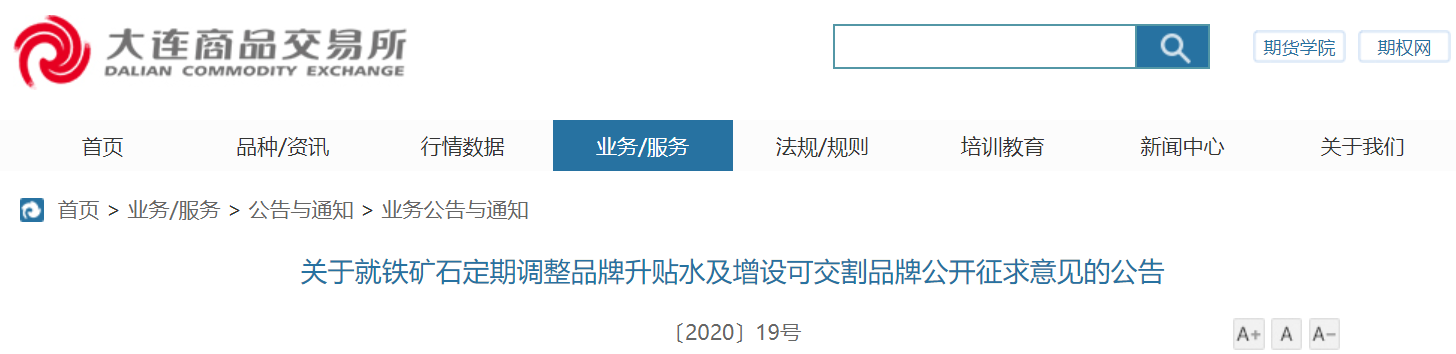 关于就铁矿石定期调整品牌升贴水及增设可交割品牌公开征求意见的公告