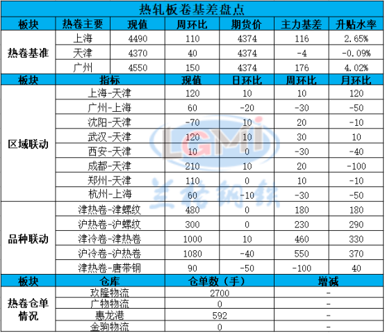 15日热卷区域联动价差:天津5.5mm普卷基价4370:上海价差120,乐从价差180
