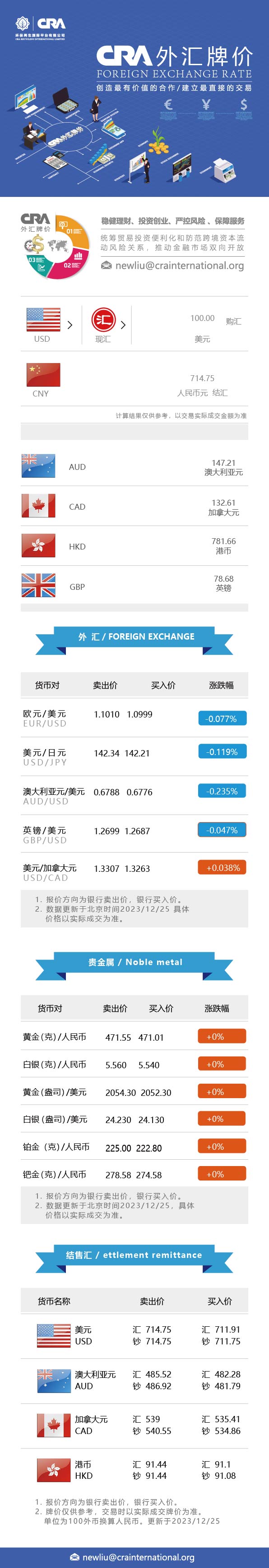 12月25日CRA贵金属及外汇市场价