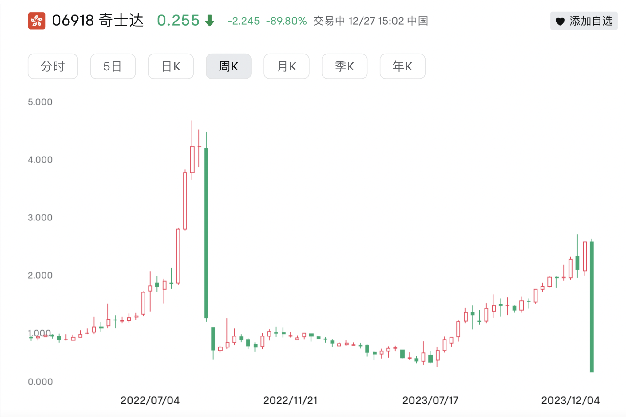 奇士达曾从2022年3月的0.76港元暴涨至2022年8月的4.6港元,涨幅同样近6倍。2022年8月尾,奇士达闪崩,9月初盘中低见0.46港元。业内人士表示,这种大涨大跌就像A股市场中的“妖股”的炒作手法,然而港股由于没有涨跌幅限制,往往更加“无情”。