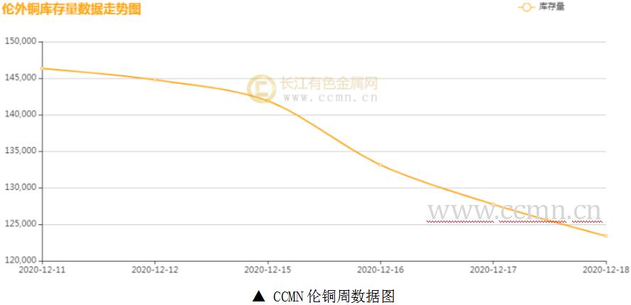 如图所示,本周伦铜库存继续下降,累积减少22925公吨至123400公吨,累积降幅15.66%。