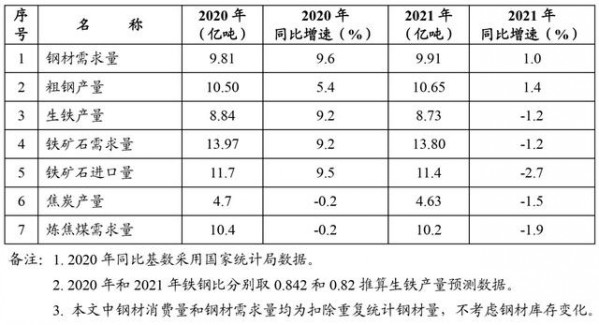 (2020年和2021年中国钢铁需求预测情况)