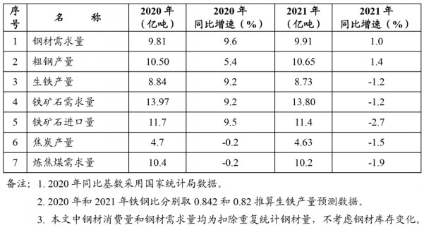 综上,根据国内外经济发展形势以及国内下游行业的发展情况,我院对2020年和2021年我国钢铁需求预测结果如下: