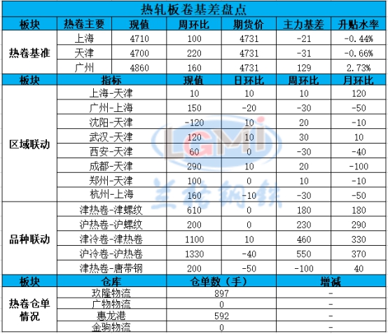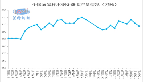 兰格调研:本周35家样本钢企热卷(4589, -37.00, -0.80%)产量308万吨,比上周减少4万吨;厂库88万吨,比上周减少8万吨。全国29城社库179.04万吨,周减0.57万吨。