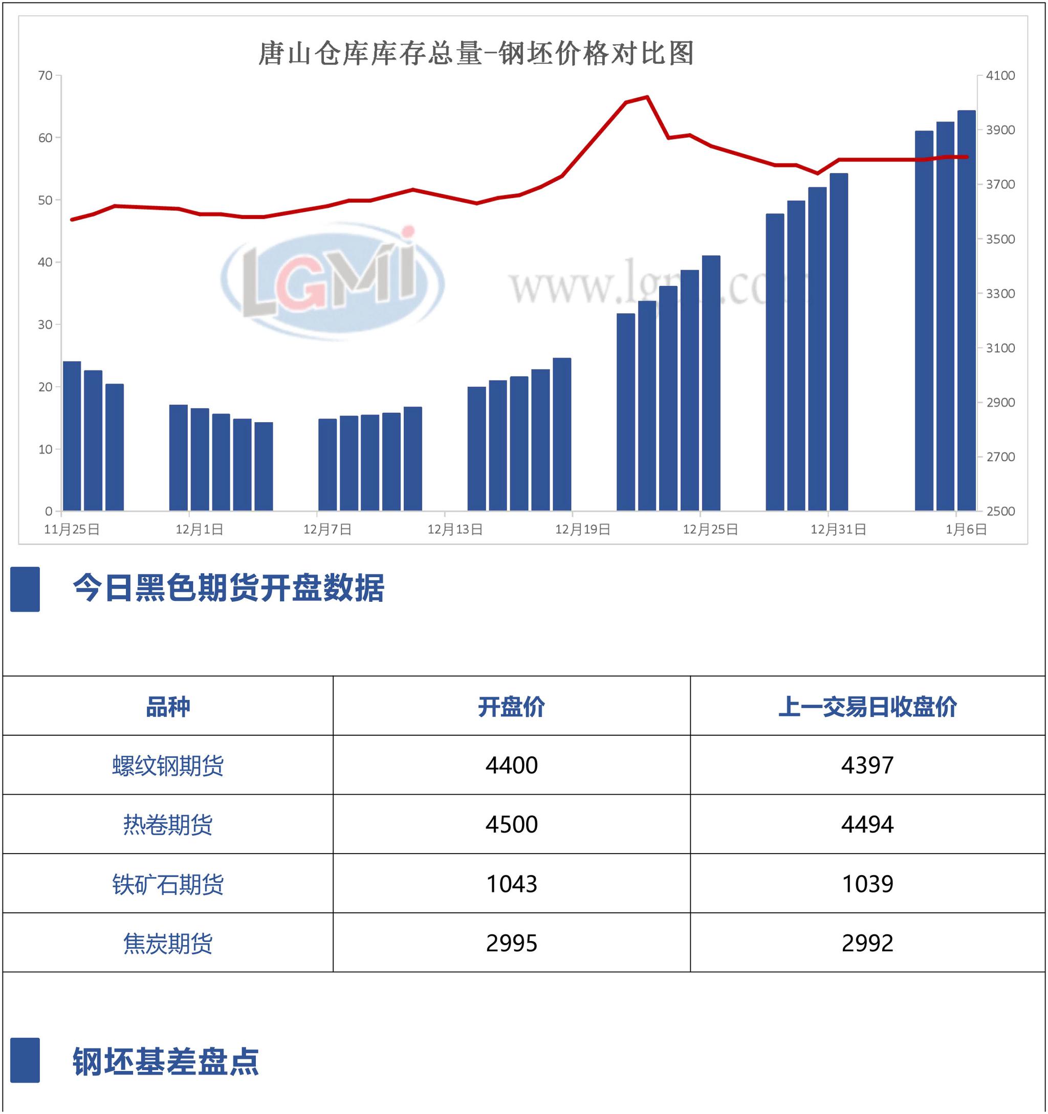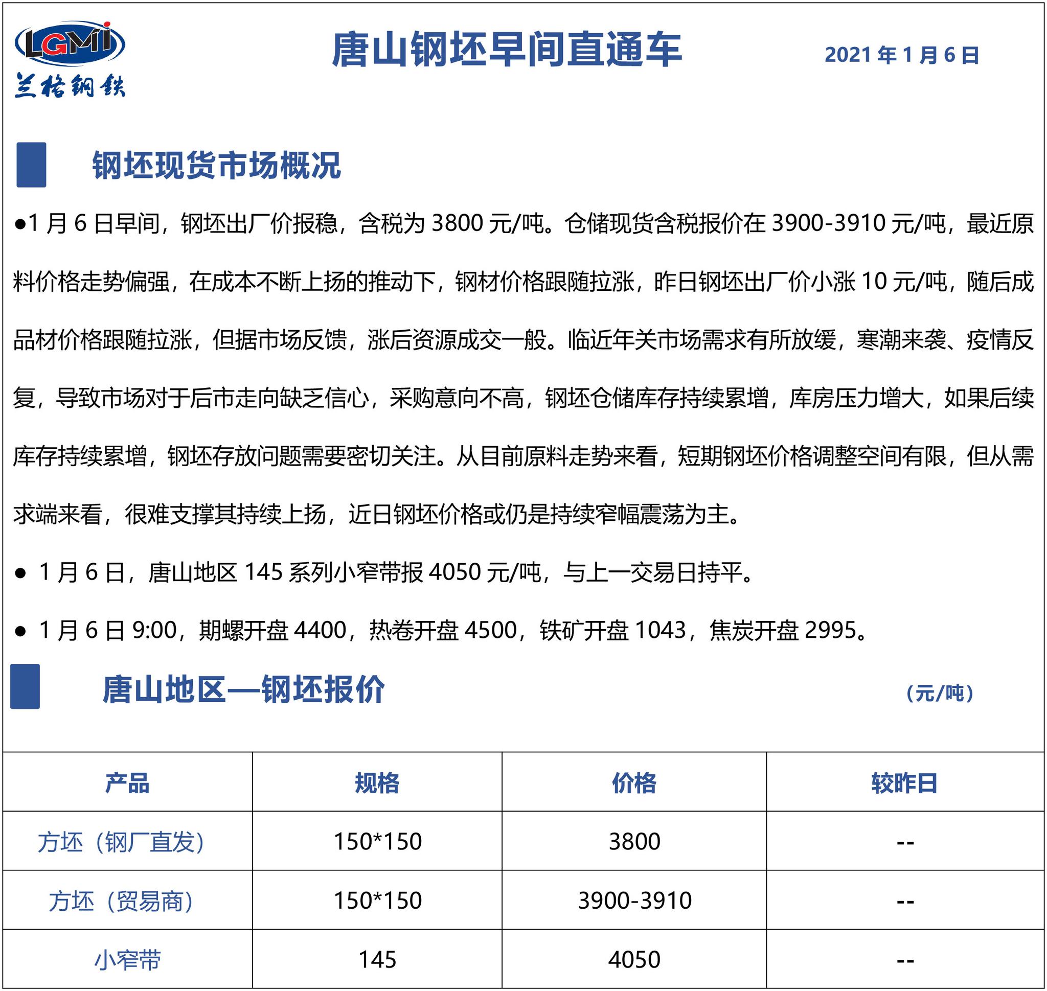 1月6日唐山钢坯早间直通车