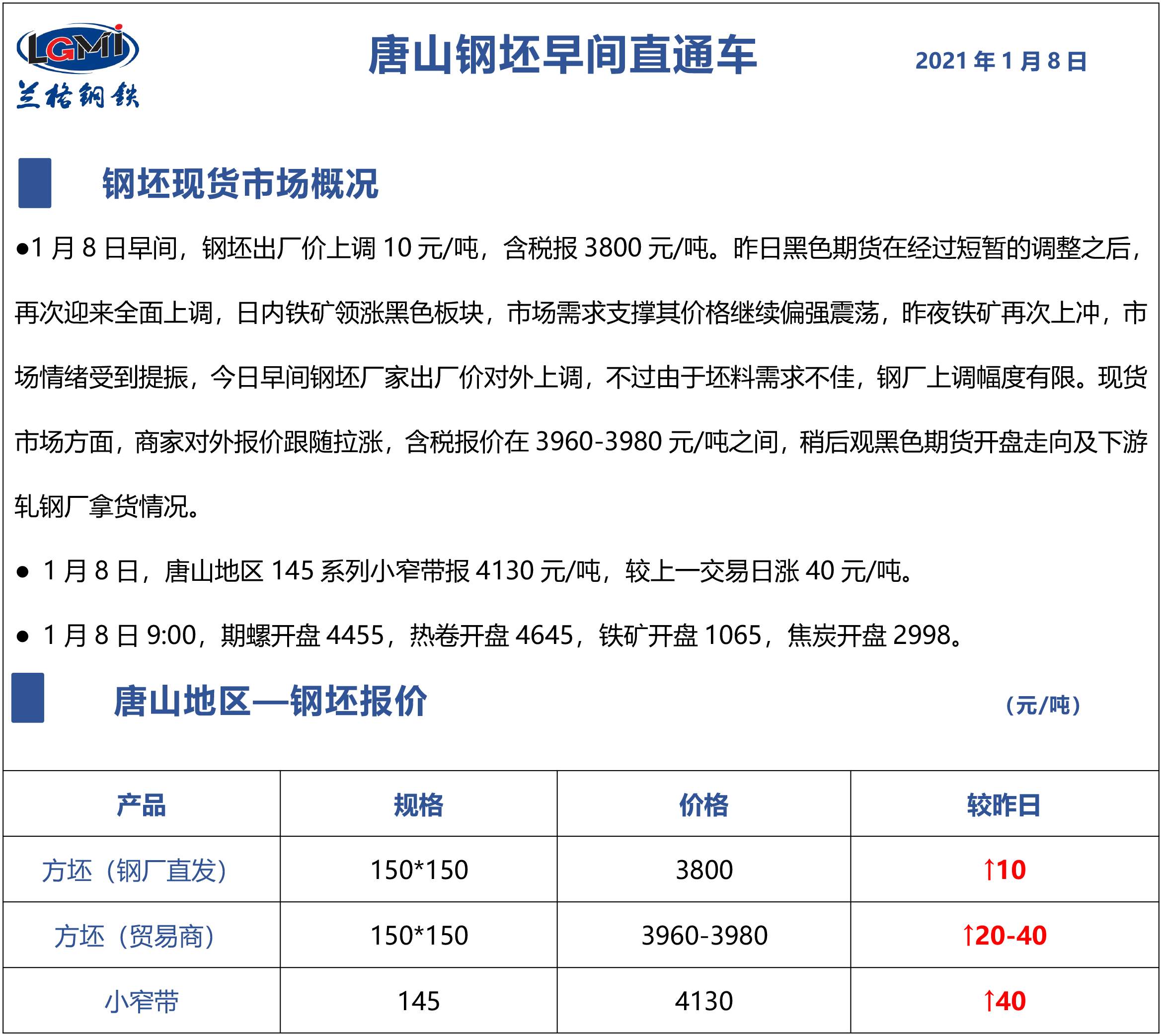 原标题:1月8日唐山钢坯早间直通车