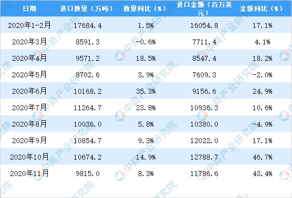 铁矿石是巴西的第二大出口商品。2020年,巴西铁矿石出口额为257.2亿美元,较上年增长了13.4%,占该国商品出口总额的12.25%,2019年这一比例为10.06%。