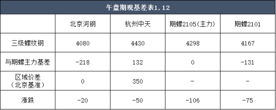 【2021年1月12日,杭州晴,中天螺纹价格4430元/吨,中天盘螺价格4650元/吨,杭州螺纹库存26.8万吨,昨天螺纹出库3.3万吨!】