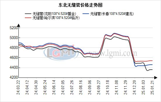 21日东北无缝管市场价格维稳运行。据兰格钢铁云商平台监测数据显示,现无缝管108*4.5mm沈阳市场报4380元,长春市场报4460元,哈尔滨市场报4500元。与其他地区相比,天津到沈阳价差为50元;;长春到沈阳价差为40元。