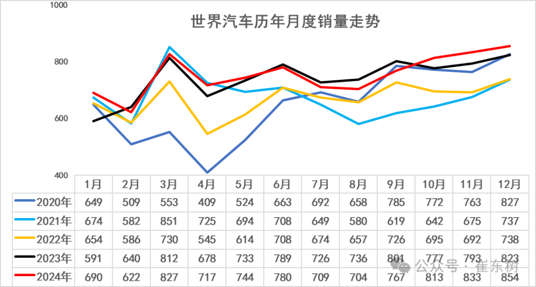 2024年1-12月世界车市较平稳,因中国车市在1月春节前销量提升因素带来世界增量,3-5月世界车市走势平稳,6-12月世界车市走势不强,中国车企贡献8月以来较大增量,4季度的走势较强。