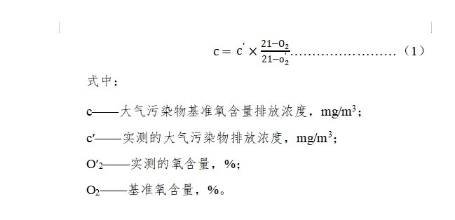 二、将“表1”中标注“c”原表述修改为“炼钢石灰窑、白云石窑以及轧钢热处理工艺中的加热炉实测排气筒中大气污染物排放浓度应按公式(1)换算为氧含量8%状态下的基准排放浓度,轧钢热处理工艺中的其他热处理炉实测排气筒中大气污染物排放浓度应按公式(1)换算为氧含量15%状态下的基准排放浓度,烧结机头、球团焙烧设备实测排气筒中大气污染物排放浓度应按公式(1)换算为氧含量16%状态下的基准排放浓度,并以此作为判定排放是否达标的依据。在国家、省未规定其他生产设施基准氧含量和单位产品基准排气量之前,暂以实测浓度作为判定大气污染物排放是否达标的依据。”