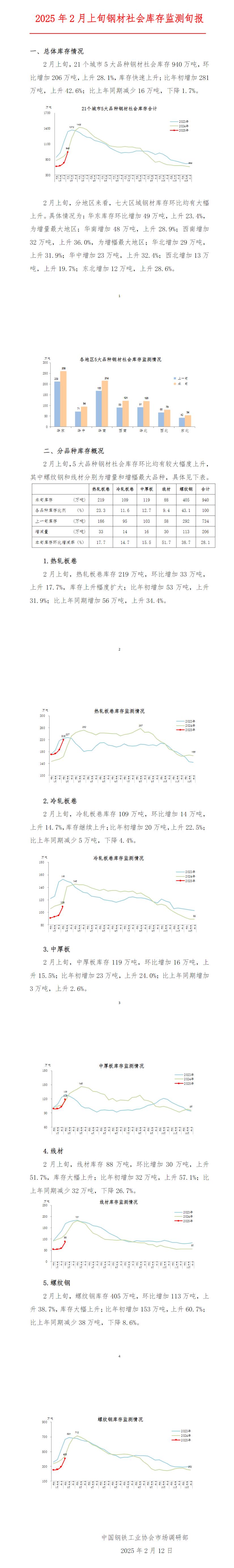 中钢协:2月上旬钢材社会库存940万吨,环比上升28.1%