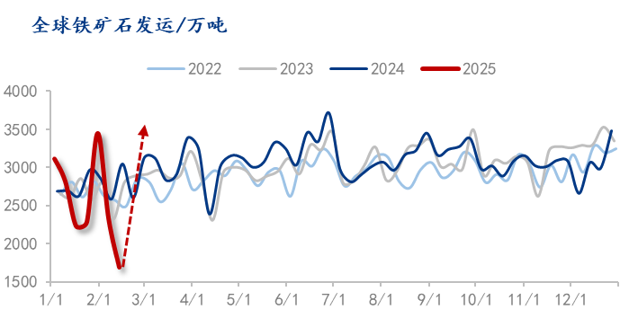核心观点:春节后铁矿(805, -22.00, -2.66%)石价格受澳洲天气以及前期铁水快速复产影响,供需基本面出现短期供弱需强,铁矿石价格创出去年国庆节后的新高。但随着下游钢材需求回升缓慢,钢厂检修增多,预计2月下半月铁水产量仍有下降空间,且目前发运天气扰动已经消除,铁矿石供需情况重新恶化,价格或阶段性回调。后续随着气温逐渐回升,且目前钢厂盈利率尚可,钢厂复产动能较强,预计3月铁水产量会随着钢材需求复苏共振上升,铁矿石价格企稳反弹。但全年铁矿石供给过剩无法改变,且下半年发运压力由于一季度的天气扰动会更大,整体铁矿石供强需弱的基本面使得后续铁矿石价格呈M型走势,而M型的右尾或被拉长,全年铁矿石价格高点或于本轮春季行情出现。