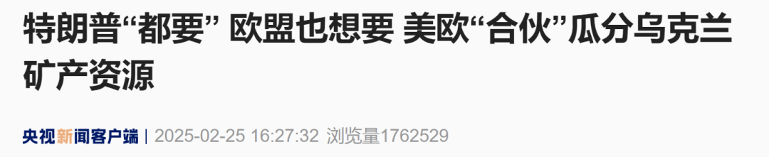 据央视新闻报道,乌克兰拥有丰富的矿产资源,而这些资源近期正成为乌克兰与美国、欧盟之间博弈的焦点。美国总统特朗普坚称,美国帮助乌克兰抵御俄罗斯,理应“得到回报”,而欧盟也于24日提出一项新的协议,希望获取乌克兰资源。