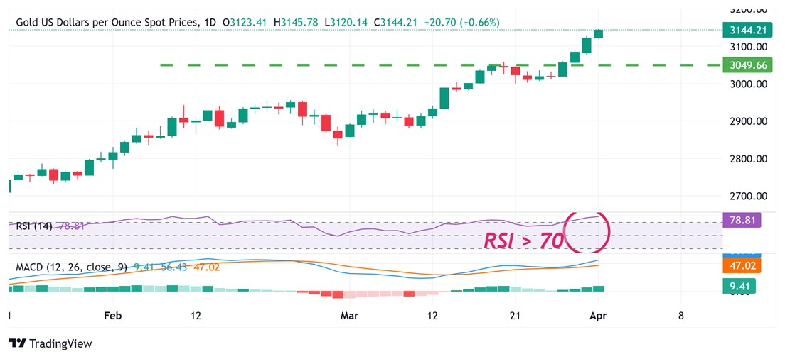 不过,黄金基本面继续看涨,围绕美国总统特朗普即将宣布的对等关税的不确定性,以及它们对全球经济的影响,继续推动避险资金流向黄金。此外,持续的地缘政治紧张局势进一步支撑对黄金的需求,并继续支持金价上涨。