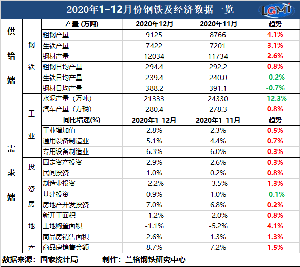 原标题:兰格追踪:2020年钢铁及经济数据一览