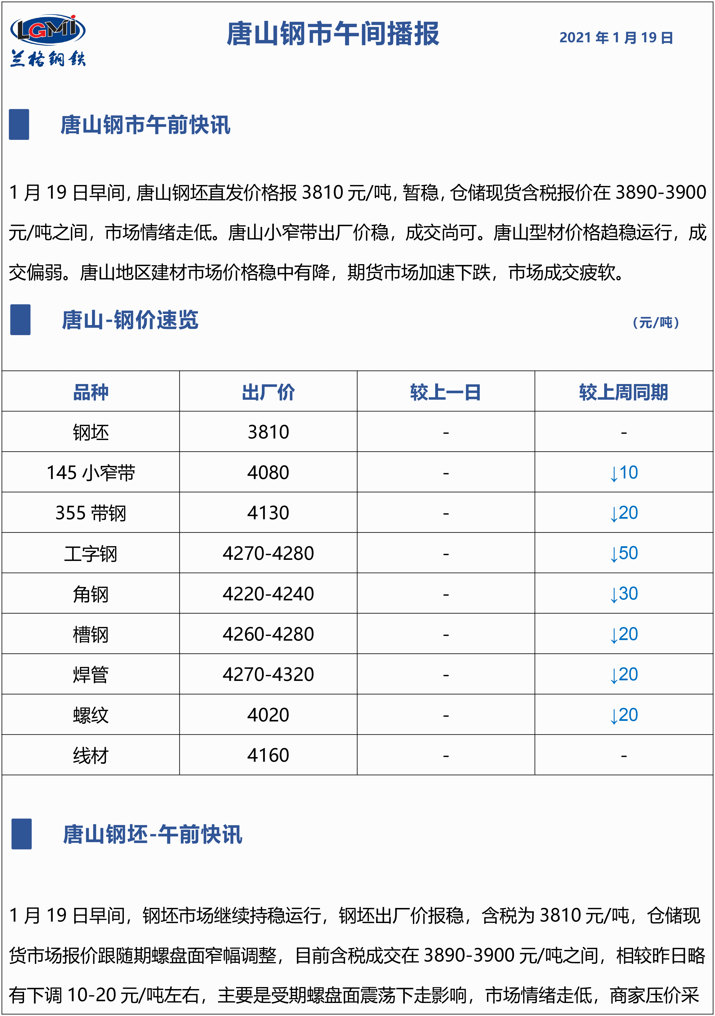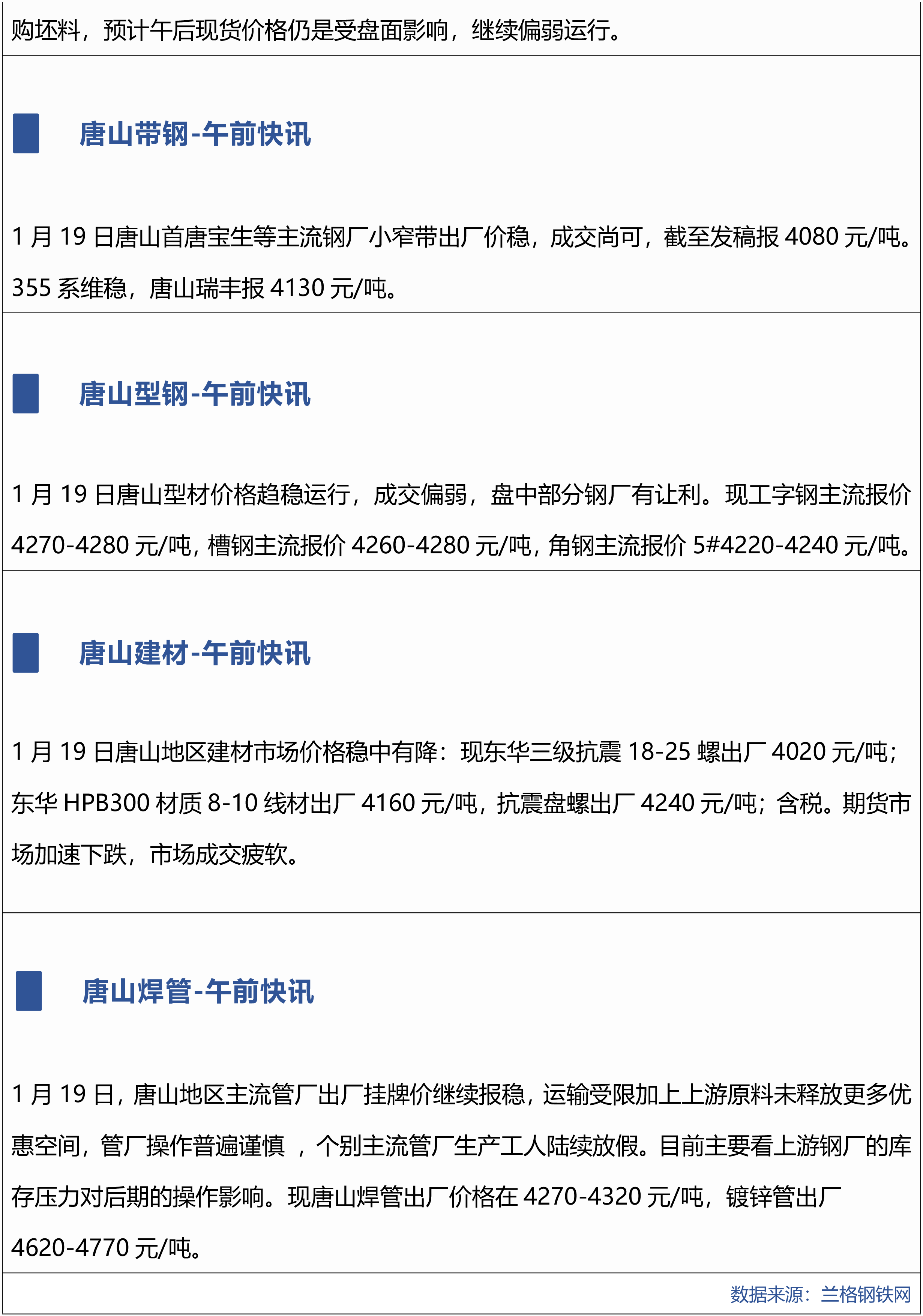 原标题:1月19日兰格唐山钢市午间播报